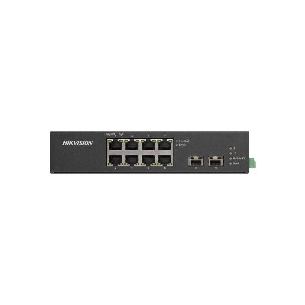 8 portový Gigabitový neřízený průmyslový PoE Switch Hardwarové funkce 6× Gigabitové porty PoE, 2× Gigabitový port Hi-PoE, 2× Gigabitové optické uplink porty SFP. Standard IEEE 802.3at / af / bt pro Hi-PoE port (max.90 W PoE výstup). Standard IEEE 802.3at / af pro porty PoE (výstup PoE max. 30 W). Přepěťová ochrana 6 KV pro porty PoE. Přenos na dlouhé vzdálenosti až 300 m. Funkce PoE watchdog pro automatickou detekci a restart kamer, které nereagují. Izolace portů ke zlepšení zabezpečení sítě. Wire speed forwarding MAC address table 4K Switching capacity 20Gbps Packet forwarding rate 14,88Mpps Internal cache 1,5 Mbits Technologie Store-and-forward switching.Ostatní parametry Masivní vysokopevnostní kovové provedení. Spolehlivý tichý provoz bez aktivní ventilace Provozn