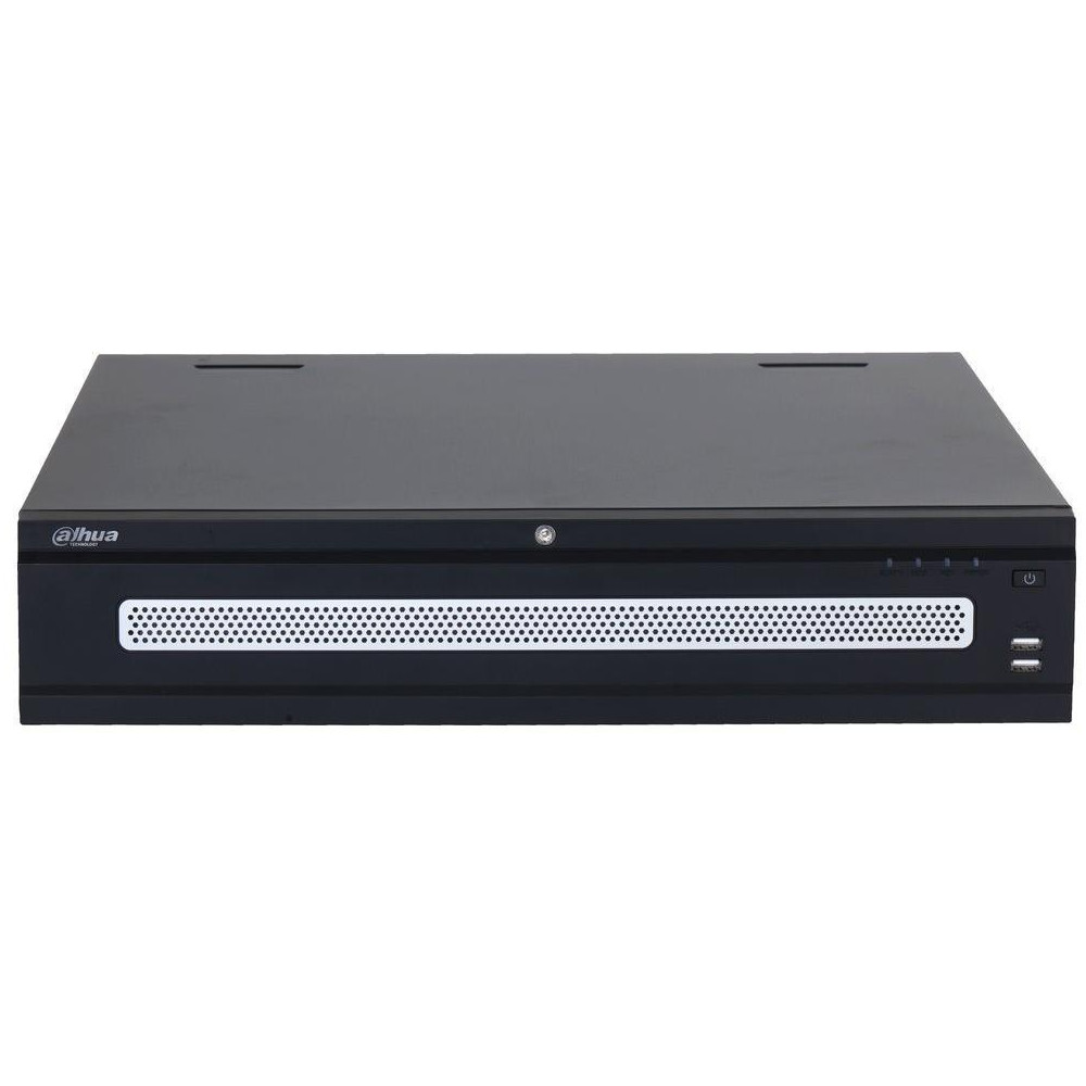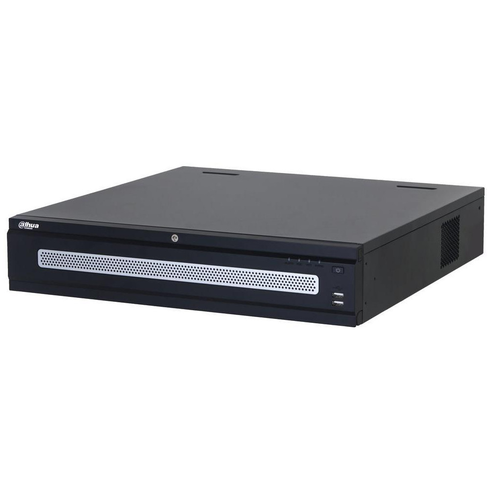 2× 2,5 GbE RJ-45, 16× alarm vstup, 8× alarm výstup, 1× audio vstup (RCA), 2× audio výstup (RCA), 2× USB 3.0, 2× USB 2.0, 1× eSATA, 1× RS-232, 1× RS-485 A/B, pozice pro 8× SATA HDD (max. 16 TB/disk), 4× HDMI, 2× VGA.
